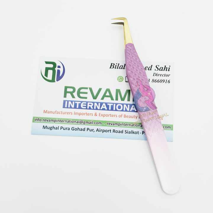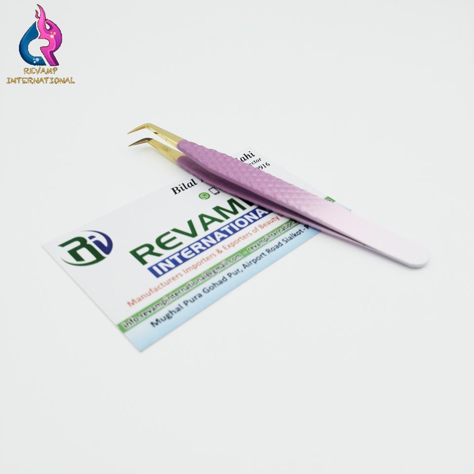 แหนบสำหรับต่อขนตาสีขาวและสีม่วงพร้อมด้ามจับเพชรปลายทอง