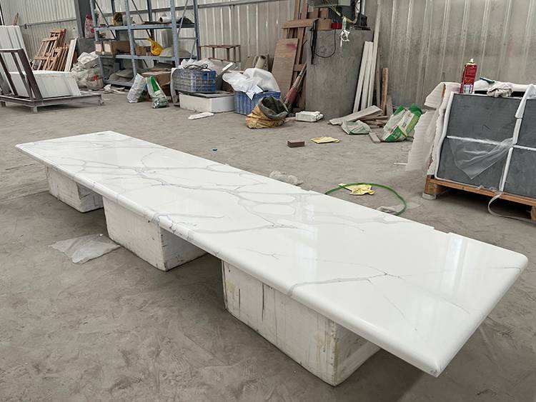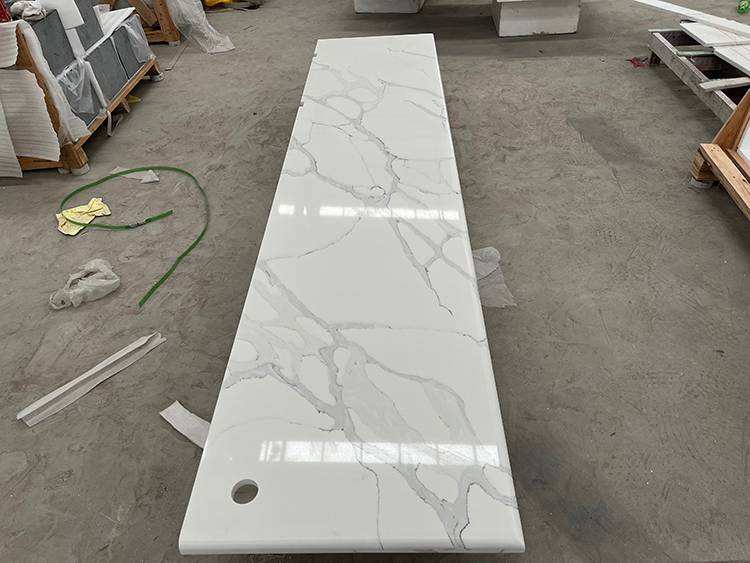 แผ่นหินเทียมควอตซ์สีขาวขนาดกำหนดเองเคาน์เตอร์ห้องครัวและห้องน้ำกระเบื้องปูพื้นแผงผนัง-ขายส่ง