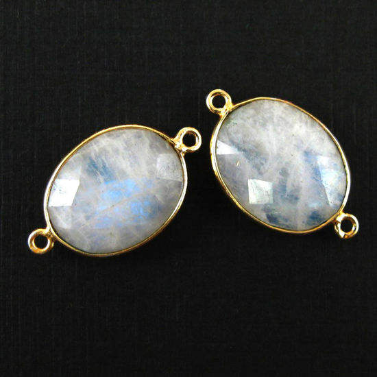 มูนสโตนสีขาวรูปวงรีเจียระไนทรงเหลี่ยม ตัวเชื่อมต่อพลอยเงินแท้ชุบทอง ทำด้วยมือสำหรับสร้อยข้อมือ DIY