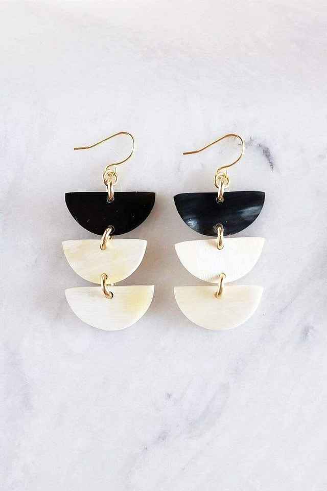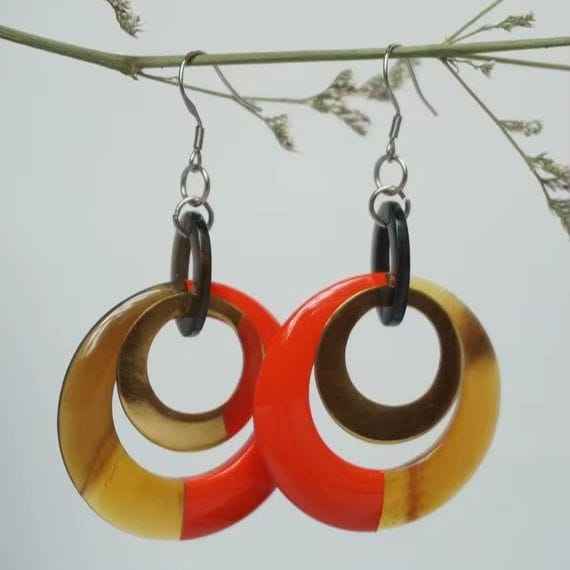 ต่างหูทำจากเขาวัวแท้สีขาว สำหรับผู้หญิงและเด็กผู้หญิง ดีไซน์งานฝีมือจากธรรมชาติ