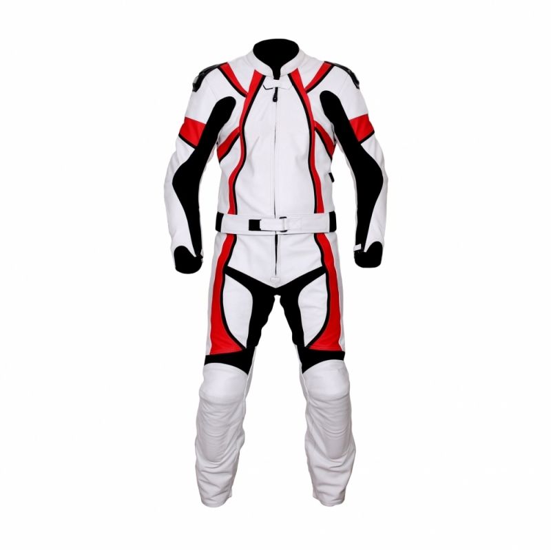 White Red Motorbike Leather Suit