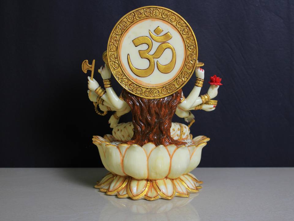 รูปปั้นพระแม่ลักษมีสีขาวทำจากเรซิ่นหลากสี สำหรับการบูชาและตกแต่งบ้าน งานศิลปะสไตล์อาร์ตเดโค ดีไซน์ทำมือ งานฝีมือนิรมลา
