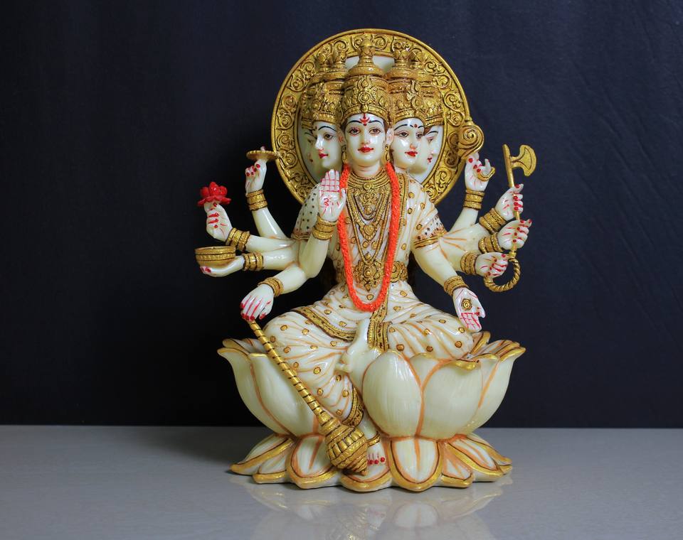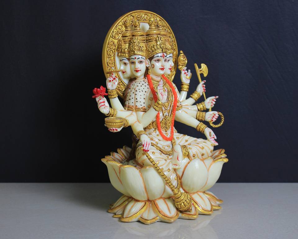 รูปปั้นเทพีลักษมีเรซิ่นสีขาว งานฝีมือเรียบง่าย
