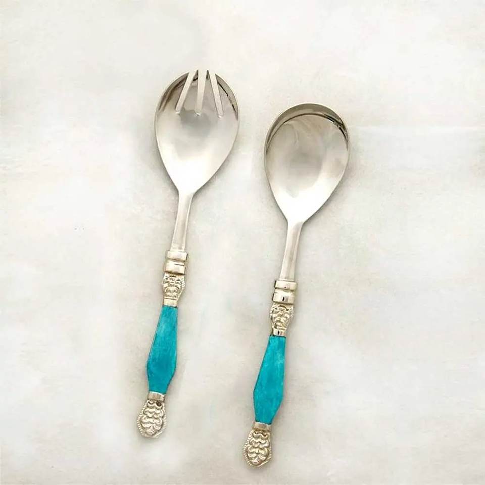 ชุดเซิร์ฟสลัดโลหะสีทองพร้อมที่จับทำจากเรซินสีขาวสำหรับโต๊ะอาหารรับประทานอาหาร