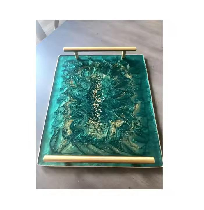 ถาดเสิร์ฟเรซิ่นสีขาวพร้อมหูจับ ราคาสมเหตุสมผล สำหรับใช้ในบ้าน โรงแรม ถาดเรซิ่นสีทองสำหรับตกแต่งโต๊ะ