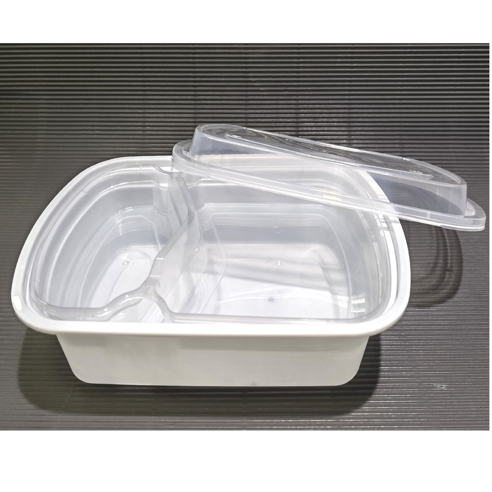 ภาชนะพลาสติกใส่อาหารแบบใช้ซ้ำได้สีขาวถาดเก็บอาหารแบบสองชั้นและมีช่องใส่ของหลายช่องสำหรับ Takea