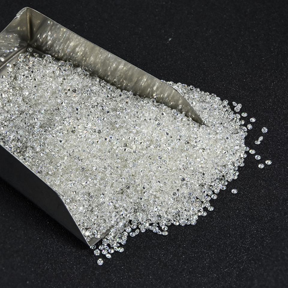 พลอยมอยส์ซาไนต์ทรงกลมสีขาว DEF 8H&A ขนาด 0.7-2.9 มม. สำหรับทำเครื่องประดับ 1 กะรัต ขายส่งจากโรงงาน