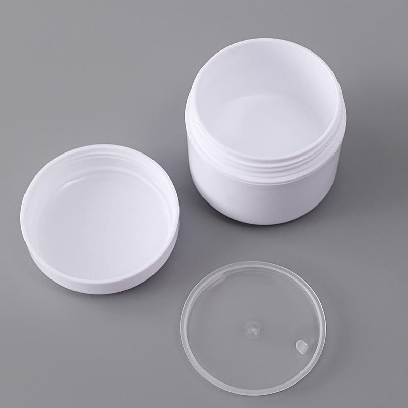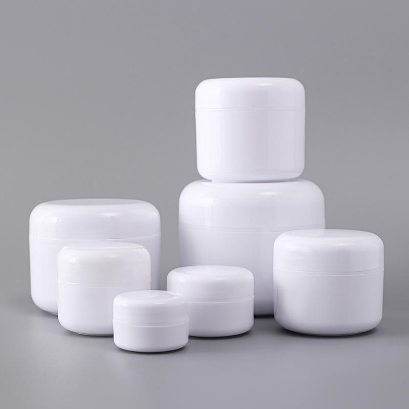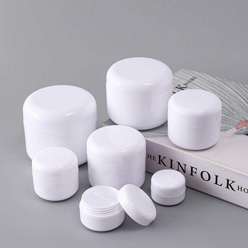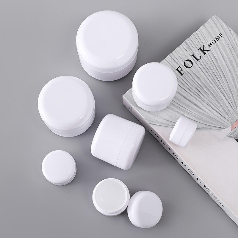 ขวดพลาสติกทรงกลมสีขาวสำหรับเครื่องสำอาง ฝาแบบ Snap Top หลายขนาด พกพาสะดวก ชุดเดินทาง ผลิตด้วยวิธีฉีดขึ้นรูป บรรจุภัณฑ์สำหรับมาส์กหน้า