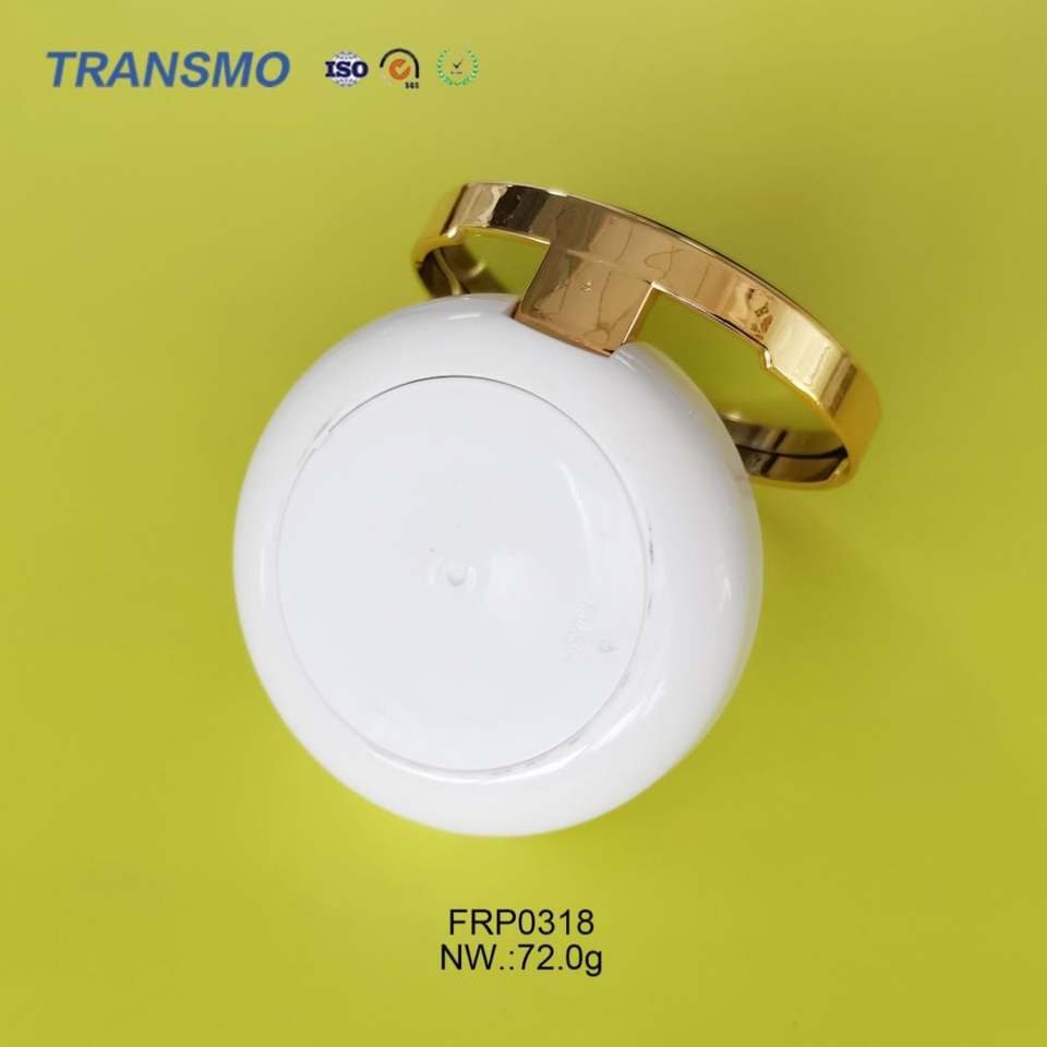 ตลับพลาสติกทรงกลมสีขาวสำหรับใส่เครื่องสำอางและน้ำหอม ใช้สำหรับบรรจุภัณฑ์เก็บแป้ง