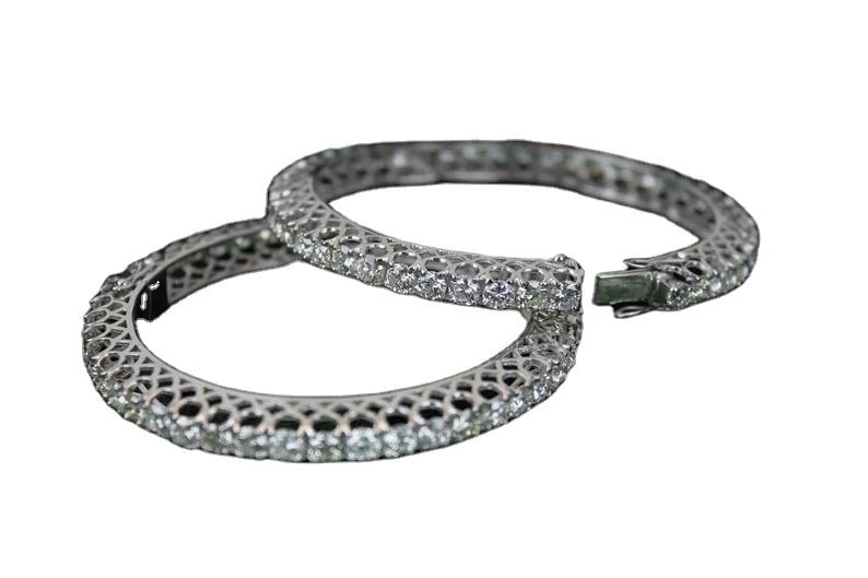 เพชรโมอิสสีขาวกลมที่สวยงามกำไลเงินสเตอริ่งชุบทองดอกไม้ลายมุกหินหลักของขวัญวันครบรอบแต่งงานสำหรับเธอ