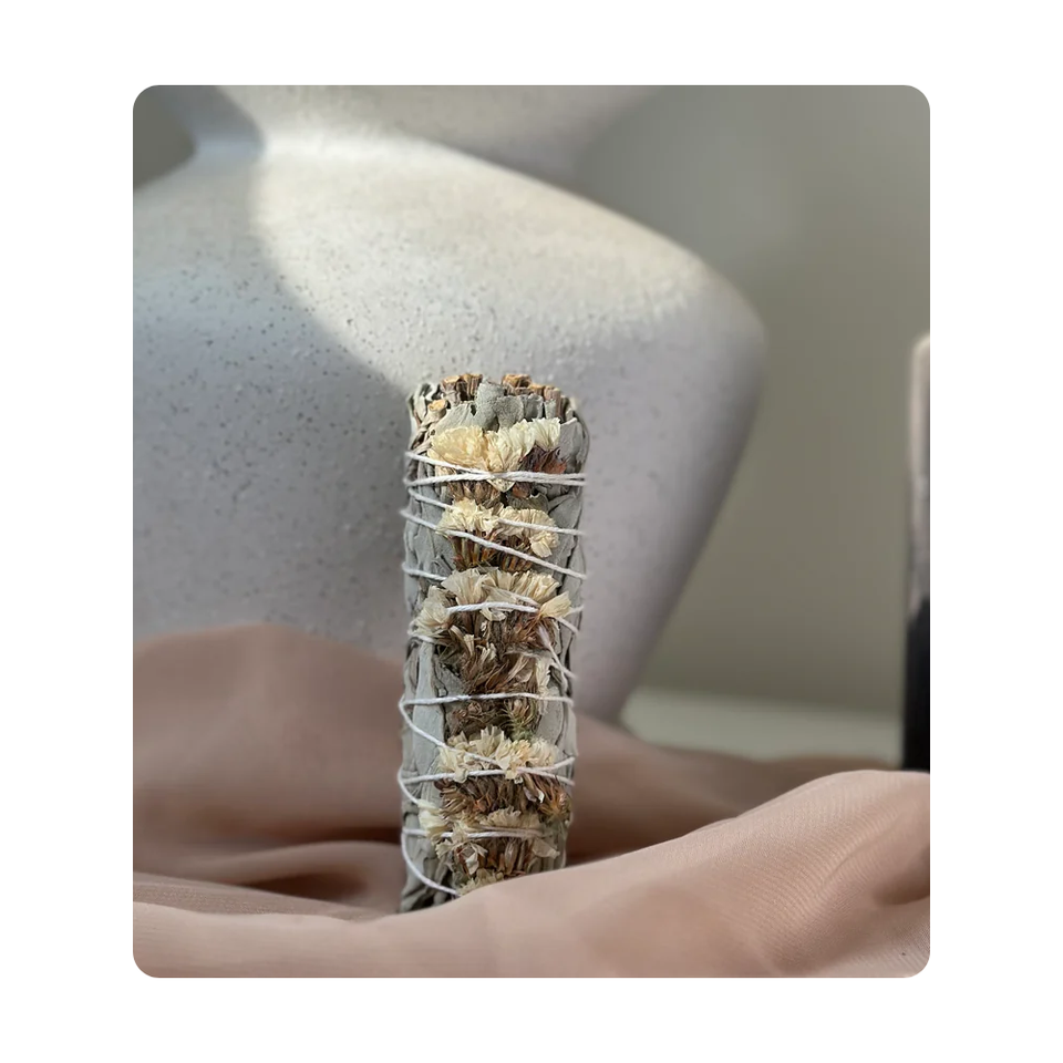 แท่งรอยเปื้อนลาเวนเดอร์สีขาวปราชญ์และเม็ดสีขาวขนาด4นิ้วสำหรับการทำความสะอาดการทำสมาธิพิธีกรรมอโรมา