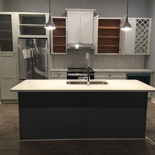 ตู้ครัวสไตล์เชคเกอร์สีขาวพร้อมซิงค์ลิ้นชักตะกร้าบานพับเลื่อน-สำหรับเราอพาร์ทเมนท์
