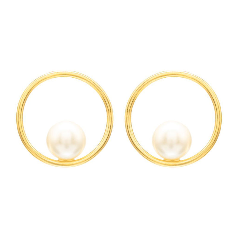 สีขาวชิมเมอร์มุกร้อนรุ่นทองเหลืองไมครอนชุบทองพลอยต่างหูสตั๊ดแฟชั่นต่างหูสตั๊ด