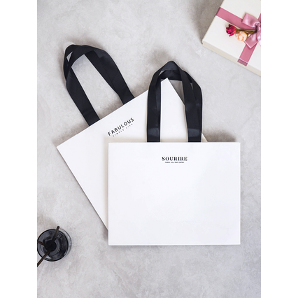 ถุงช้อปปิ้งสีขาวสายหนาขนาดกลางทนทานเป็นมิตรกับสิ่งแวดล้อมหน้าจอการถ่ายเทความร้อนตัวอักษรสำหรับใช้ในชีวิตประจำวันการโฆษณาอาหาร