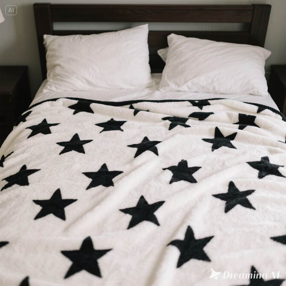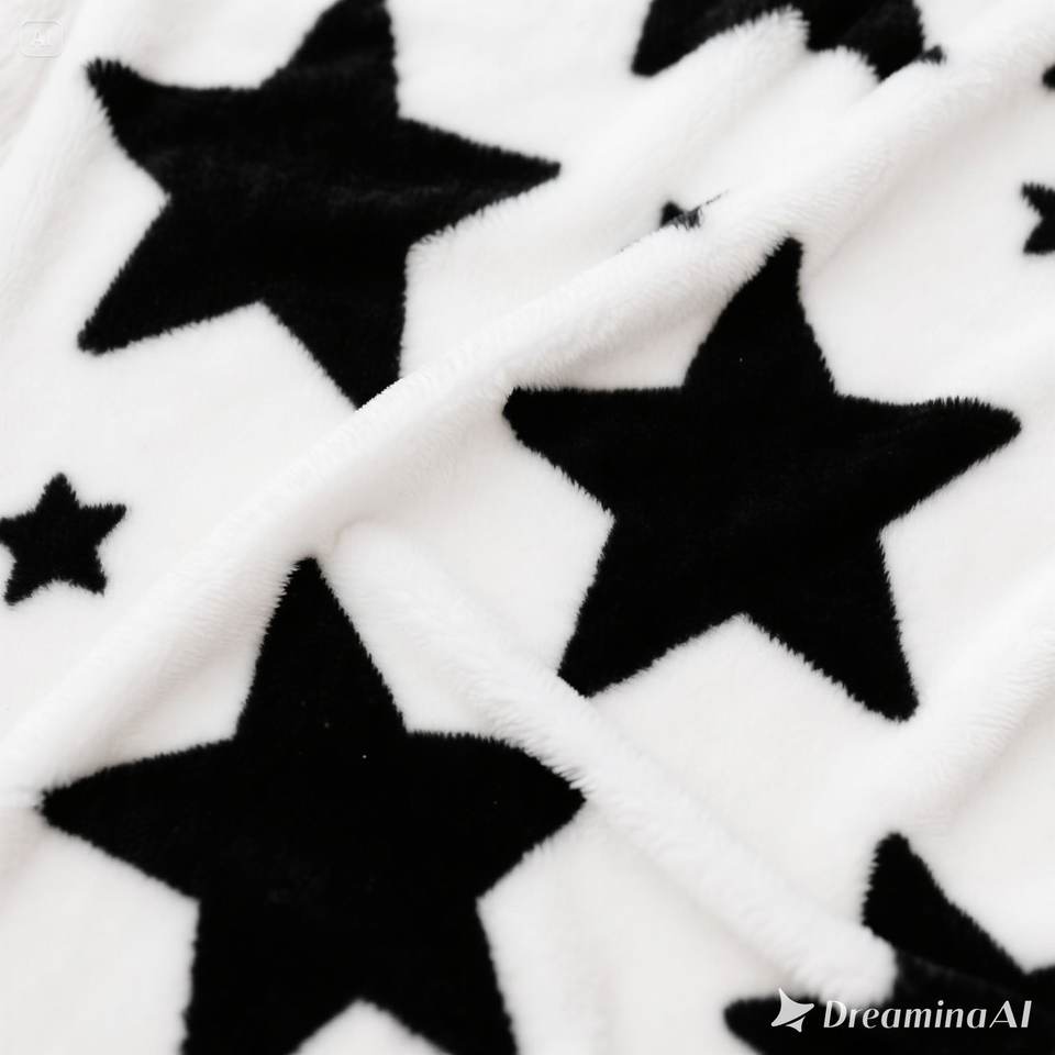 ผ้าห่มขนแกะสีขาวนุ่มสบายพิมพ์ลายดาวสีดำสองขนาด