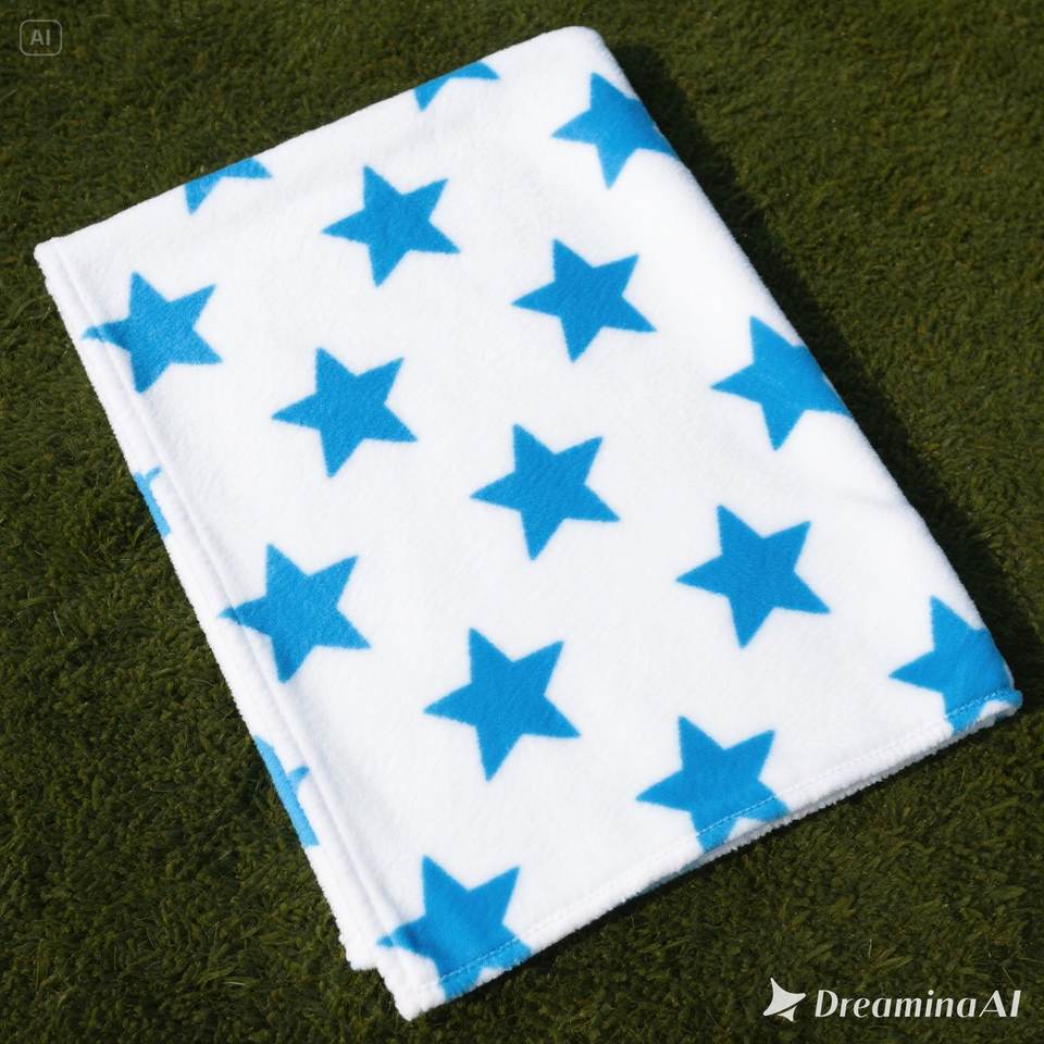 ผ้าห่มขนแกะสีขาวนุ่มสบายพิมพ์ลายดาวสีน้ำเงินขนาดคิงไซส์