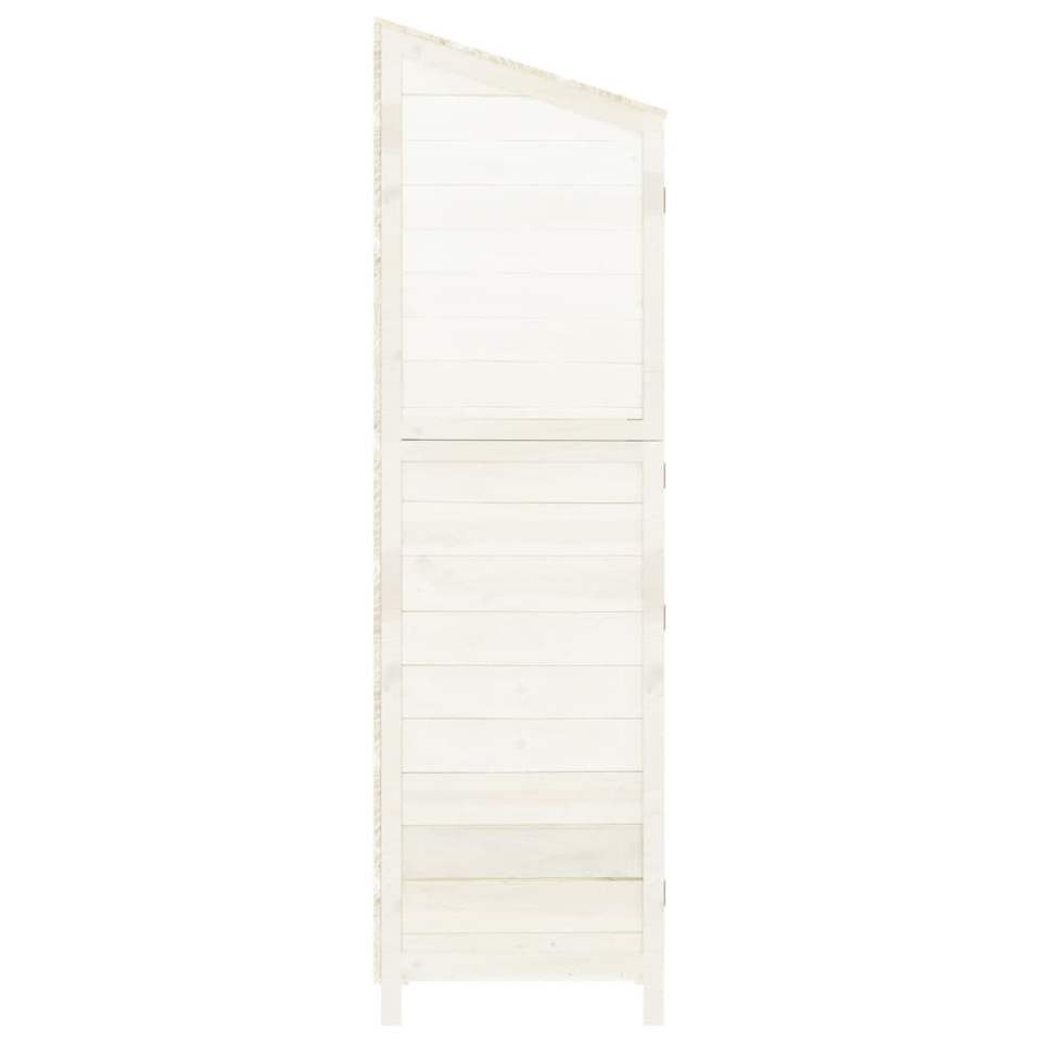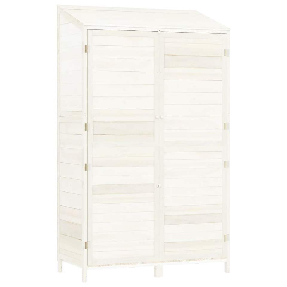 โรงเก็บของในสวนไม้เฟอร์สีขาวขนาด 40.2x20.5x68.7 นิ้ว พร้อมโซลูชั่นการจัดเก็บที่มีสไตล์