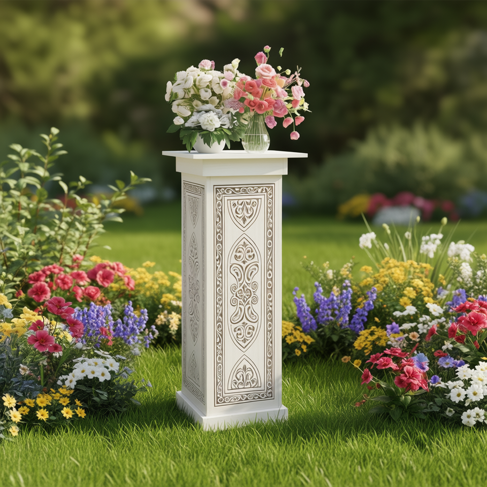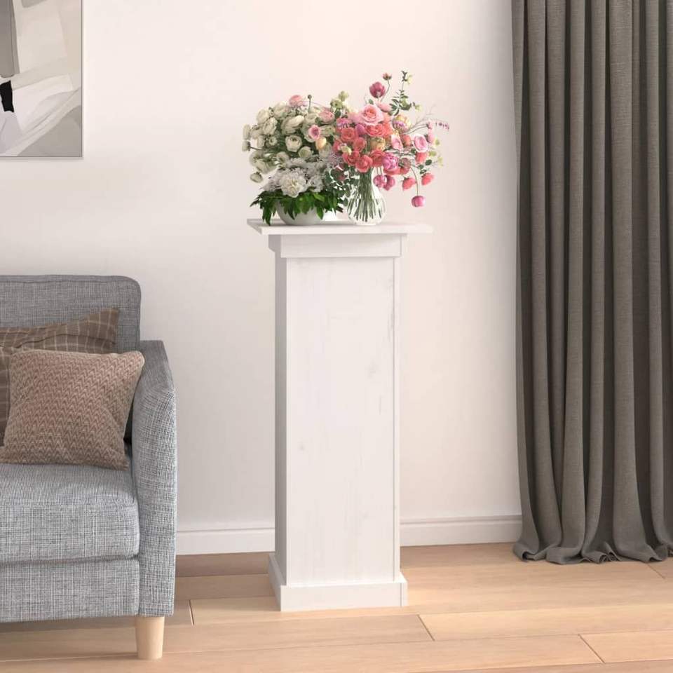 ขาตั้งดอกไม้ไม้สนสีขาวพร้อมลวดลายตกแต่งสำหรับกระถางต้นไม้ใช้ในบ้านสไตล์คลาสสิก