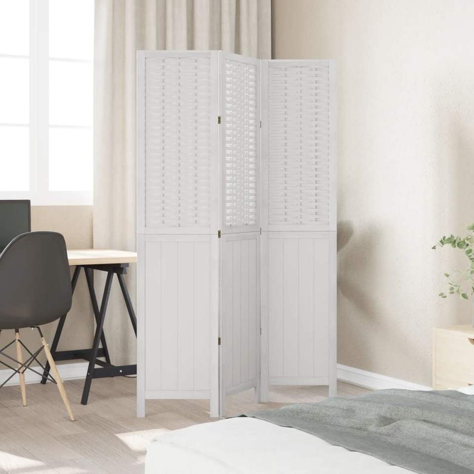 ฉากกั้นห้องไม้เนื้อแข็งสีขาว ไม้เพาโลเนีย 3 บาน ดีไซน์หรูหรา