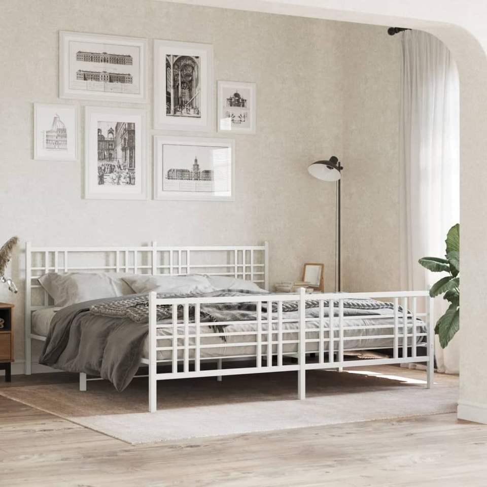 โครงเตียงเหล็กสีขาวแบบเตียงคู่ทรงสี่เหลี่ยม