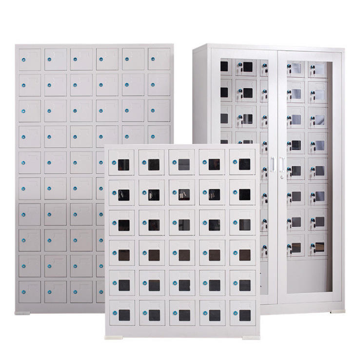 ตู้ชาร์จโทรศัพท์มือถือเหล็กสีขาว 10 ชั้น แบบผลัก-ดึง สำหรับสำนักงาน สามารถปรับปรุงเพิ่มเติมได้ ความจุขนาดใหญ่ ปลอดภัย