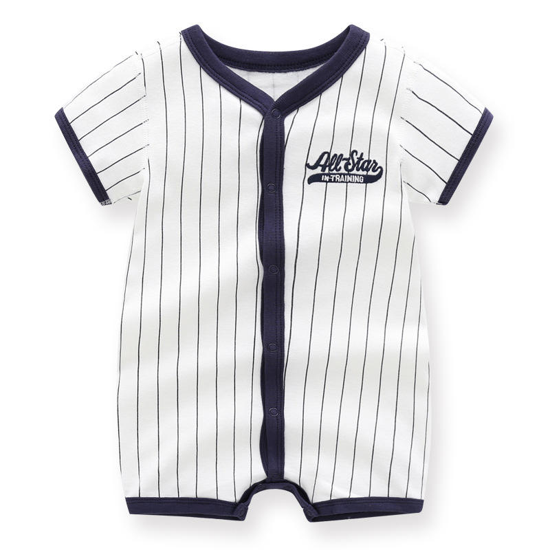 ชุดจั๊มสูทเด็กแรกเกิดแขนสั้นลายทางสีขาว ชุดรอมเปอร์เด็กทารก เสื้อผ้าเด็ก