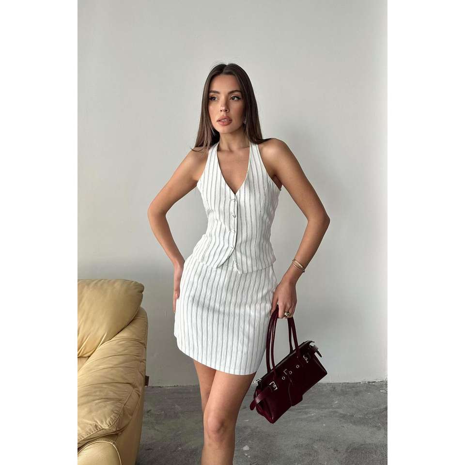 ชุดเสื้อกั๊กแขนกุดลายทางสีขาวและกระโปรง ชุดเดรสผ้าเครปลำลองสำหรับผู้หญิง ฤดูใบไม้ผลิ ฤดูร้อน