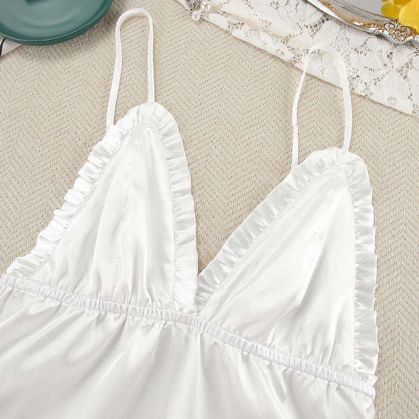 ชุดนอนผู้หญิง 4 ชิ้น สีขาว ฤดูร้อน เซ็กซี่ ระบายอากาศดี พร้อมเสื้อคลุมขนนก