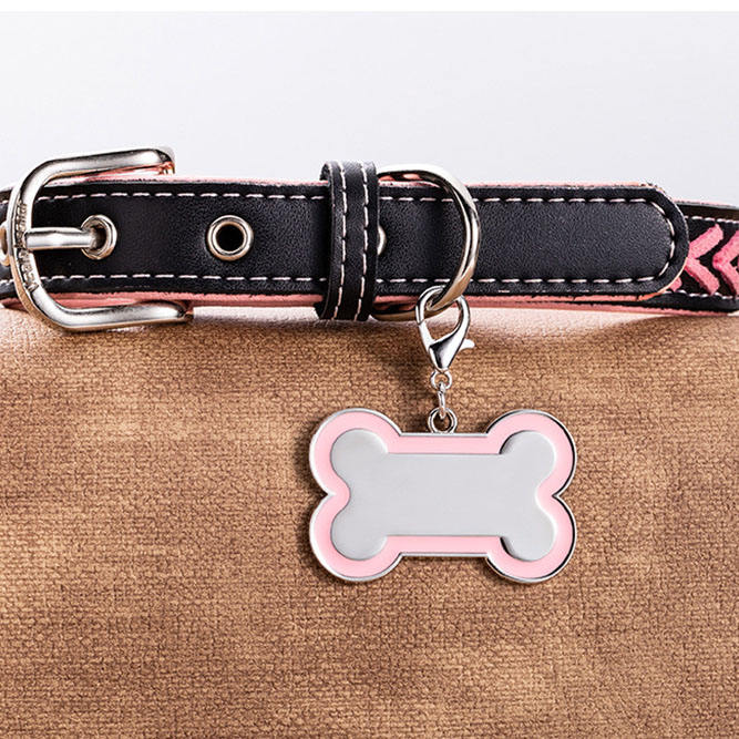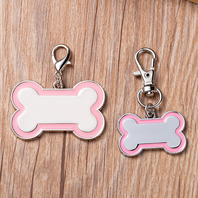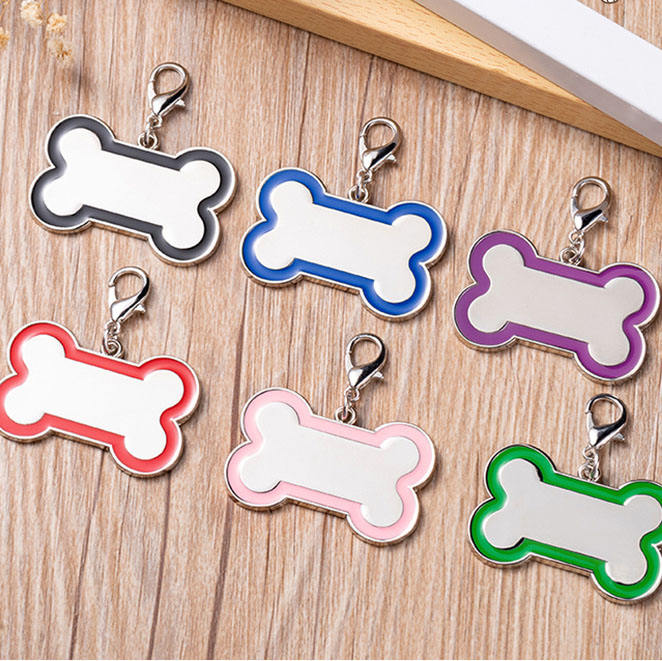 ป้ายห้อยคอสัตว์เลี้ยงโลหะชุบเกรดพรีเมียมสีขาว สลักโลโก้ตามสั่ง พิมพ์ลายกระดูกหลากสีด้วยเทคนิค Letterpress