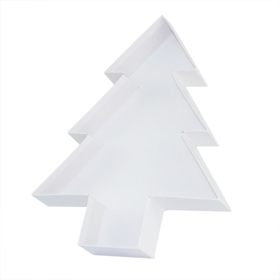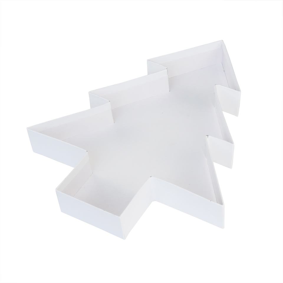 กล่องของขวัญรูปต้นคริสต์มาสสีขาวสำหรับขนมหวาน ลูกอม ลูกอมแท่ง ขนมหวาน บรรจุภัณฑ์กระดาษแข็งพร้อมฝาปิด
