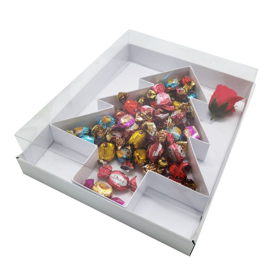 ส่วนประกอบ:กล่องสีขาว + กล่องของขวัญรูปต้นไม้ + ฝาใส