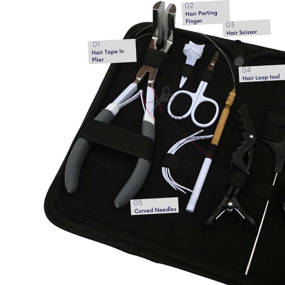 ชุดเครื่องมือต่อผมสีขาวขนาดสั่งทำพิเศษ พร้อมอุปกรณ์ติดเทป