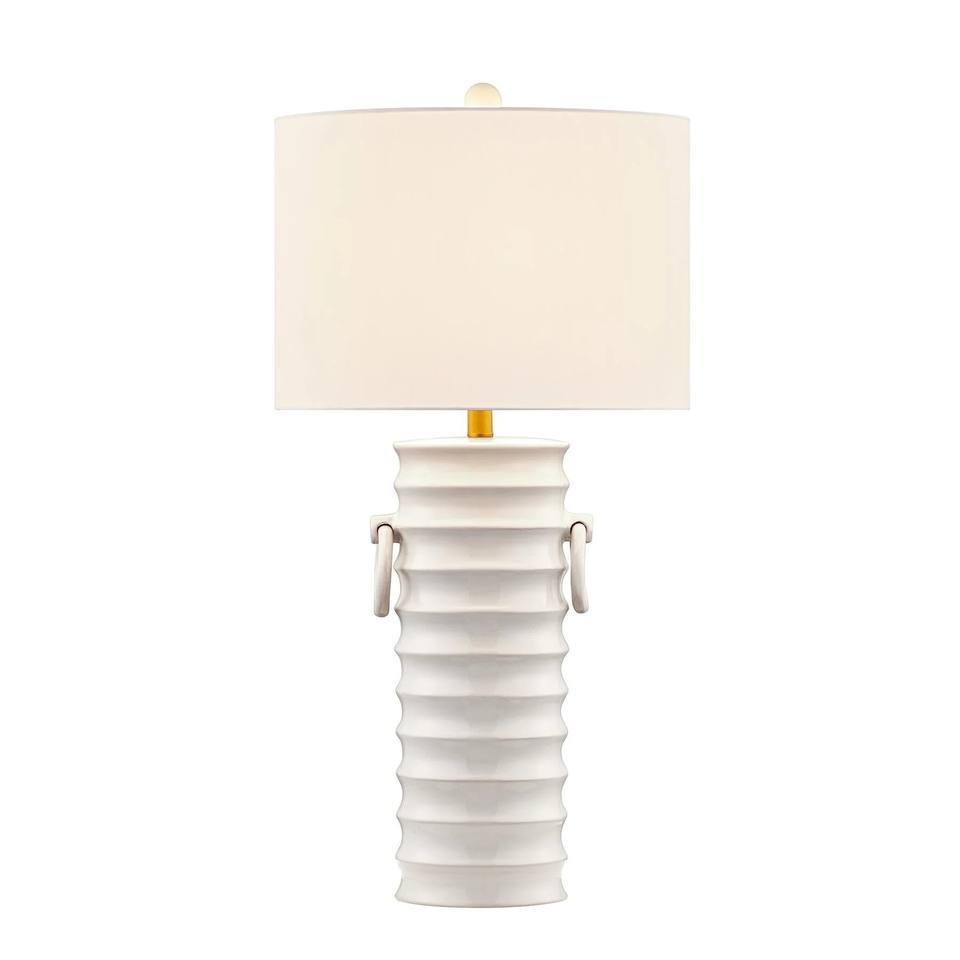 โคมไฟตั้งโต๊ะเซรามิกสีขาวลายเท็กซ์เจอร์ทรงกรวย สไตล์โมเดิร์นมินิมอล | ไฟส่องสว่างทันสมัยสำหรับห้องพักโรงแรมและพื้นที่สำนักงาน