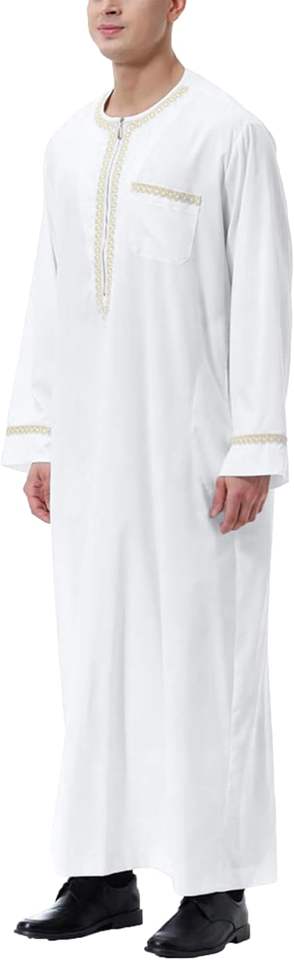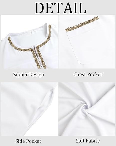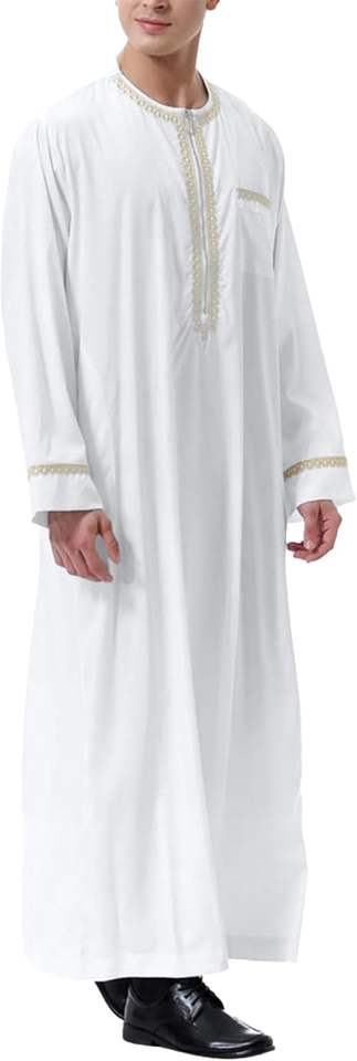 ชุดโทบผู้ชายสีขาวสุดหรู กระเป๋าเสื้อด้านหน้า ผ้าฝ้ายสำหรับฤดูร้อน ชัลวาร์ คามีซ ยาวคลุมเท้า แฟชั่นใหม่ สไตล์กาตาร์ ดูไบ เรียบง่าย