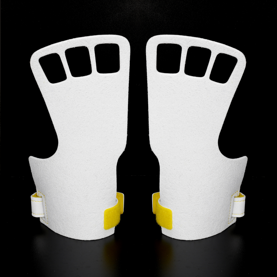 ด้ามจับหนังยิมนาสติกแบบสามรูสีขาวสำหรับฟิตเนสฟิตเนสฟิตเนสยกน้ำหนักกันลื่น