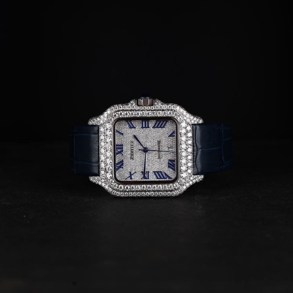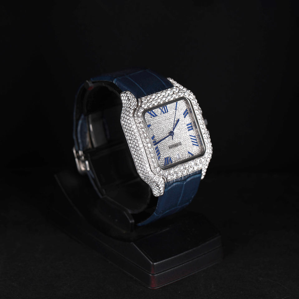 ชื่อแบรนด์:White Tone Blue Leather Roman Dial Square Watch