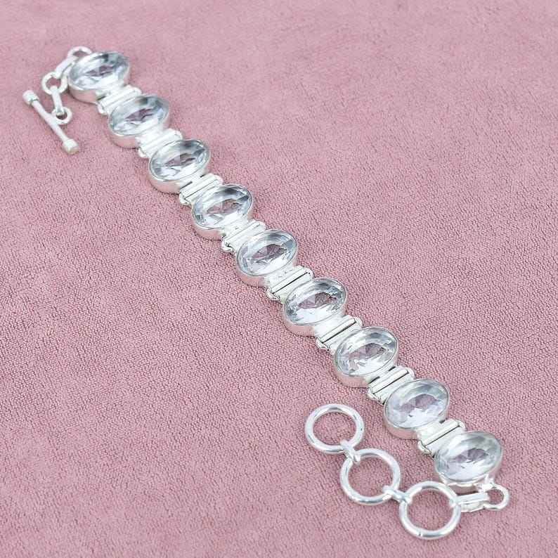 สร้อยข้อมือโทแพซสีขาวสร้อยข้อมือเงินสเตอร์ลิง925สร้อยข้อมือแฮนด์เมดสำหรับผู้หญิงสร้อยข้อมือโบฮีเมียนของขวัญสำหรับเจ้าสาวสร้อยข้อมือแฮนด์เมด