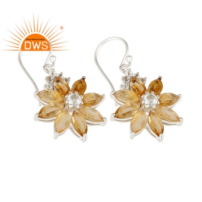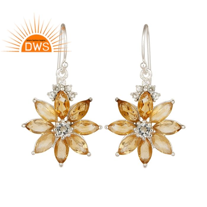 สีขาวบุษราคัมซิทรินมาร์คีส์ตัดพลอยดอกไม้ต่างหูเครื่องประดับขายส่ง925เงินสเตอร์ลิงห้อยต่างหูผู้ผลิต