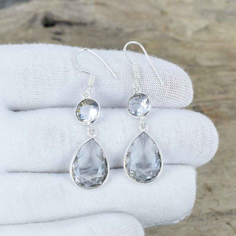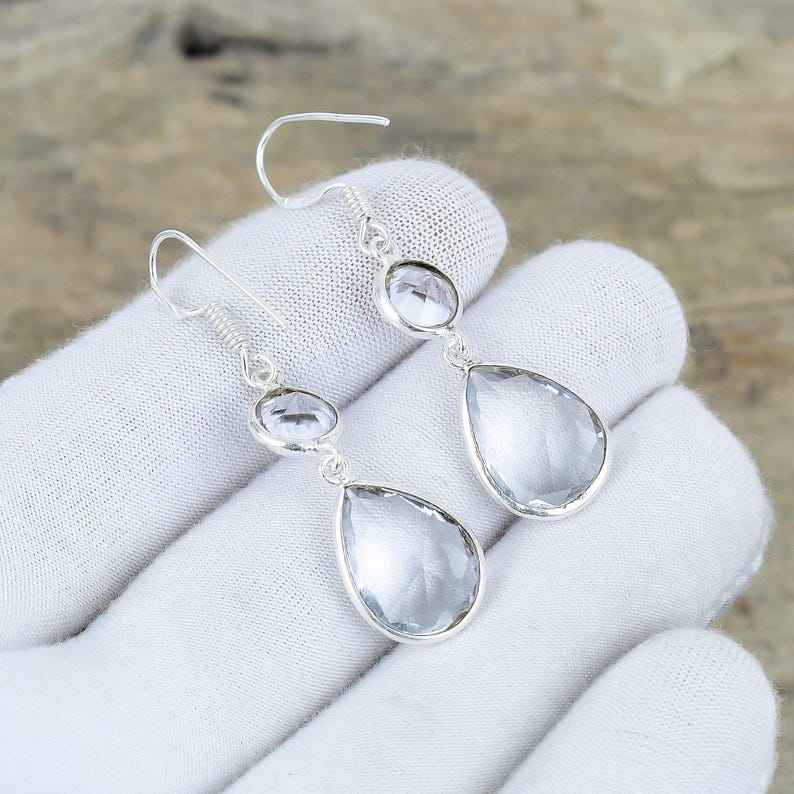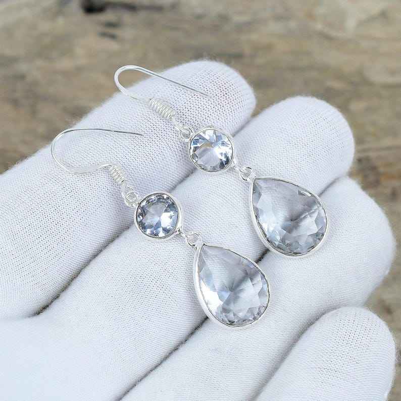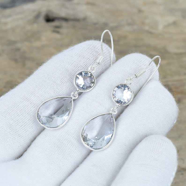 ต่างหูห้อยประดับพลอยไวท์โทแพซ เงินแท้ 925 ทำมือ ดีไซน์หรูหรา เหมาะสำหรับงานปาร์ตี้ ของขวัญวันครบรอบแทนความรัก