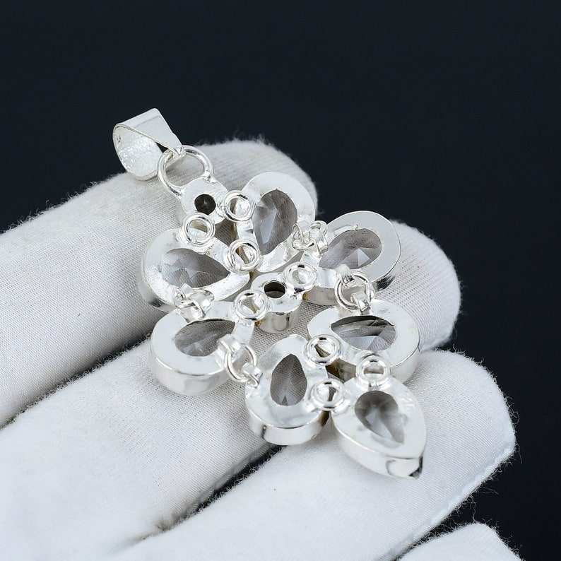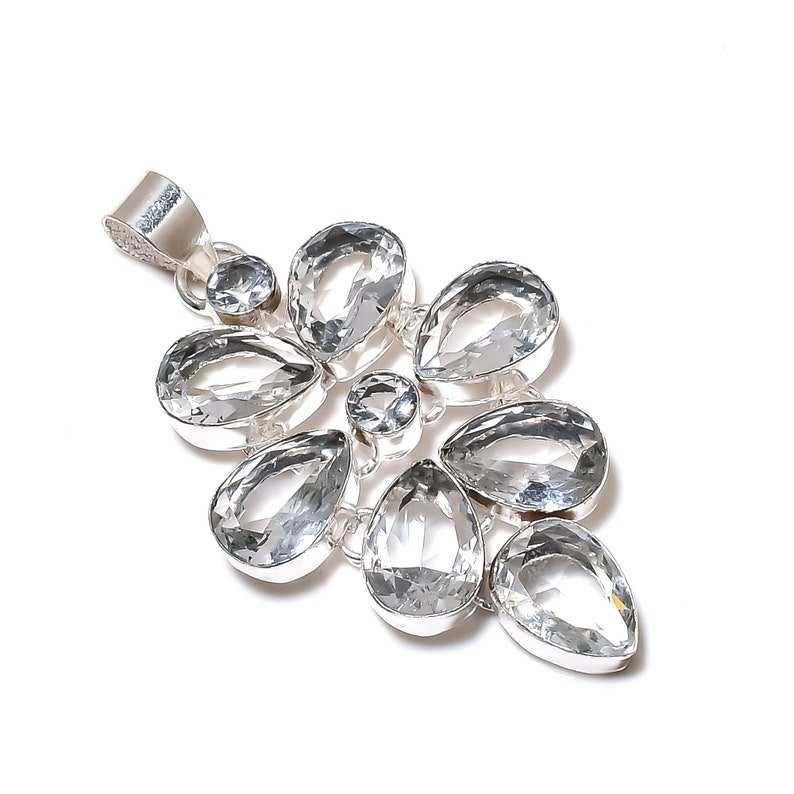 จี้หินไวท์โทแพซเงินแท้ 925 สไตล์คริสเตียนโบฮีเมียนพร้อมจี้ห้อยประดับ