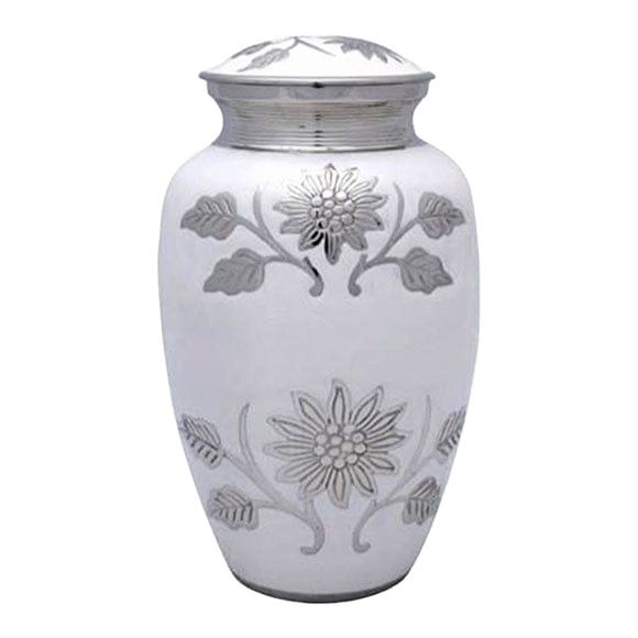 โกศโลหะสีขาวเทอร์ควอยส์รูปดอกไม้โกศสำหรับเผาขี้เถ้าทำด้วยมือโลหะที่ระลึกสำหรับมนุษย์