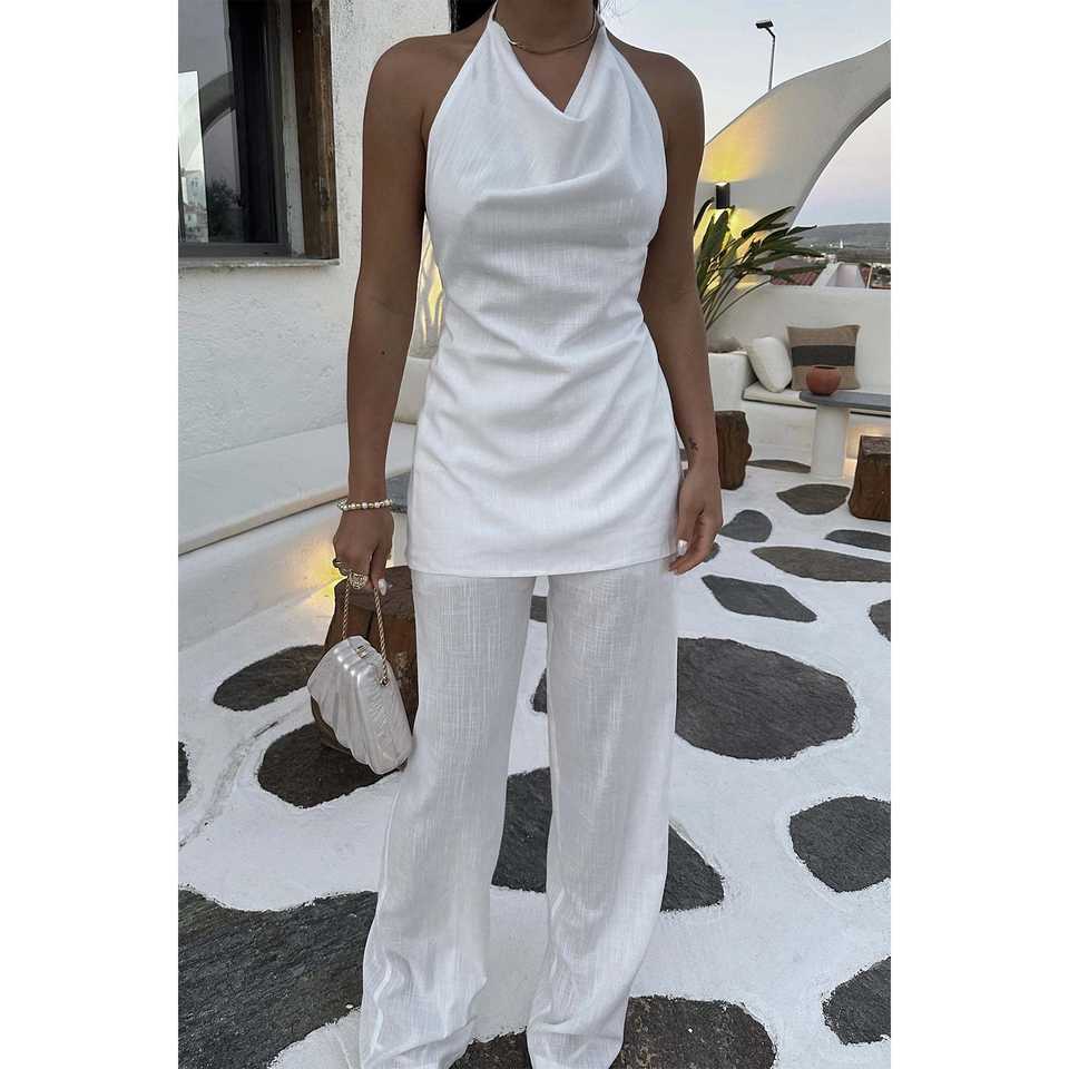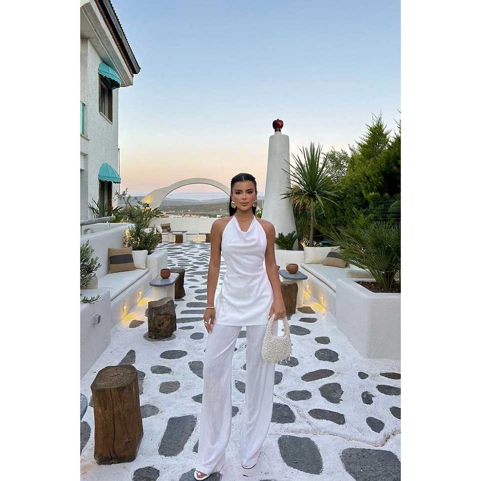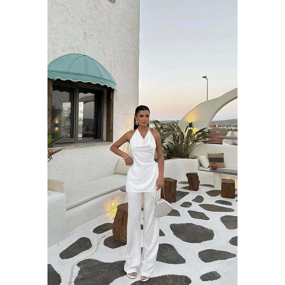 ชุดเซ็ตสองชิ้นสีขาว ความยาวเหนือเข่า แฟชั่นทันสมัยสำหรับฤดูใบไม้ร่วง สินค้ามาใหม่