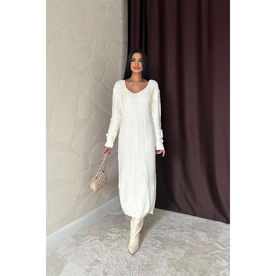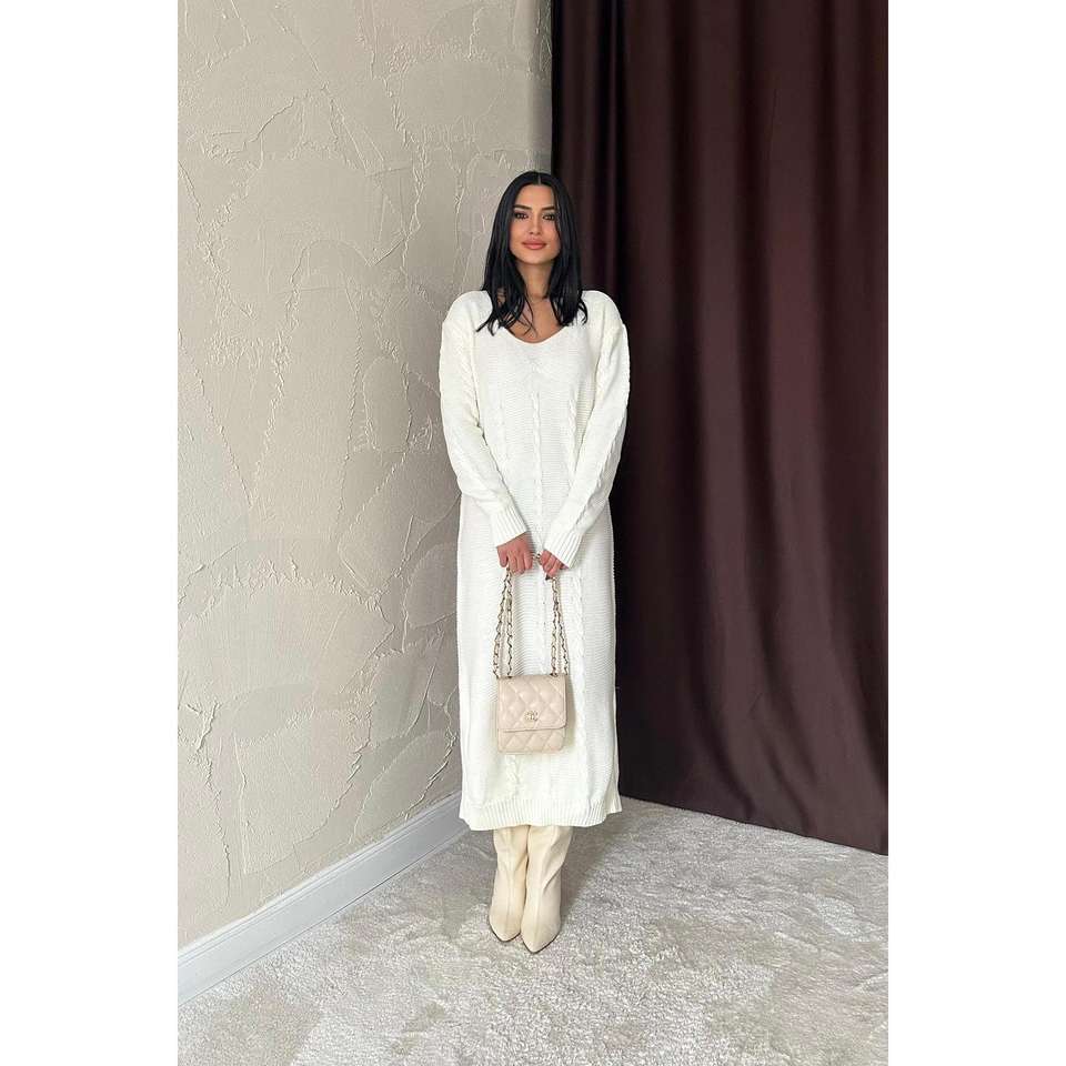 ชุดเดรสถักคอวีสีขาว เอวหลวม แขนยาว สวมใส่สบายๆ ทุกวัน สไตล์เรียบง่าย ผ้าซักได้