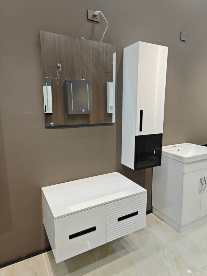 Modern White Vanity Unit with Smart Mirror Cabinet Wall-Mounted Lacquer Finish MDF Construction Multiple Storage Spaces