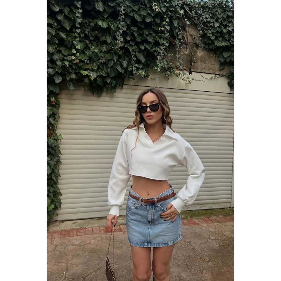 เสื้อครอปท็อปลายดอกไม้สีขาวสไตล์วินเทจ พร้อมโลโก้ ทรงหลวม ความยาวสั้น คอถักผ้าฝ้าย สำหรับฤดูใบไม้ผลิและฤดูร้อน