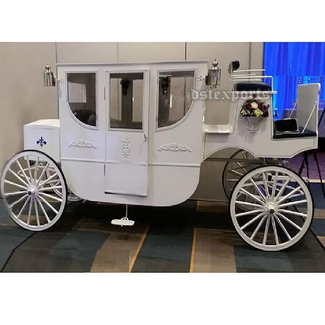 White Vintage Royal Coach & Carriages White Classic Glass Coach/Horse Carriage Victorian Horse Drawn Glass Coach Carriages