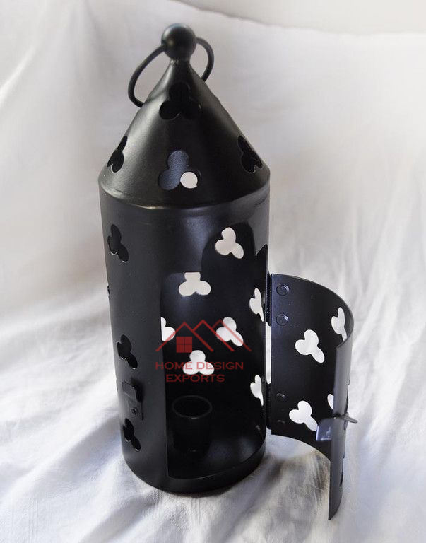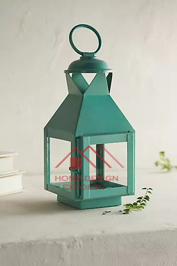 โคมไฟโลหะเคลือบสีขาวด้านในและสีเขียวด้านนอก พร้อมหูจับโลหะ ขายดี โคมไฟโลหะหรูหราสำหรับใส่เทียน