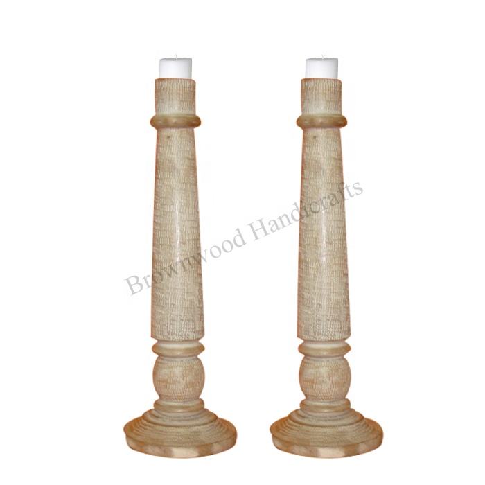 White Wash Mango Wood Candle Holders Set of 2 Christmas Lantern Decoration Handmade for Home Decor From Indian Manufacturer