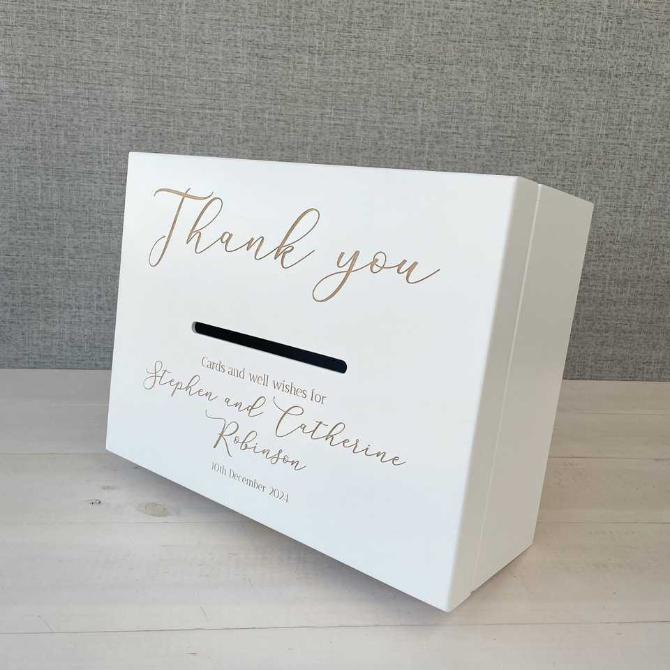 กล่องใส่ของขวัญงานแต่งงานสีขาว ดีไซน์หรูหรา พร้อมสลักเลเซอร์ ขนาด 370x275x124 มม. (เฉพาะกล่อง)