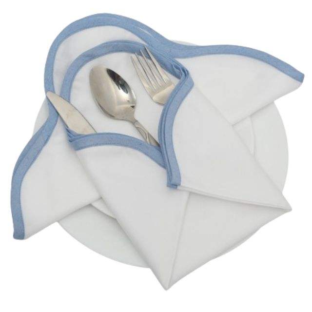 กระดาษเช็ดปากคอตตอนสีขาวพร้อมท่อสีฟ้าสำหรับงานเต่งงานเเเต่งงานบ้านร้านอาหารงานเลี้ยงบ้านไร่ของขวัญสำหรับดินเนอร์100%